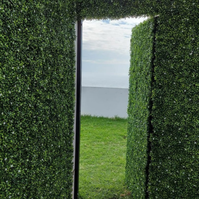 Perfect for privacy walls, boutique entrances, balcony gardens, apartment patios, event stages, or creative office dividers, this artificial hedge infuse environments with a soft natural beauty and a sense of timeless refinement — ideal for those who seek effortless, understated sophistication.